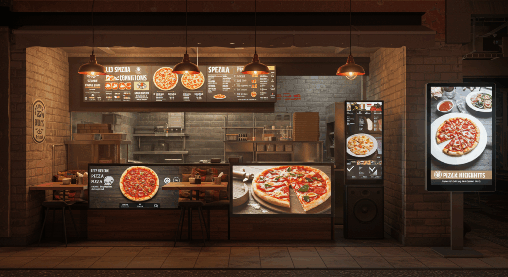 📺 TV indoor exibindo os destaques do seu cardápio